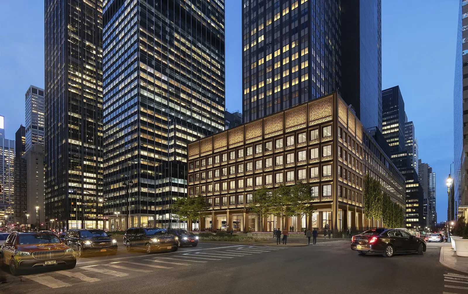 An existing office tower from the 1960’s is being overclad with terracotta and bronze metal panel as part of a $100m facelift for the building. The design is led by KPF for SLGreen